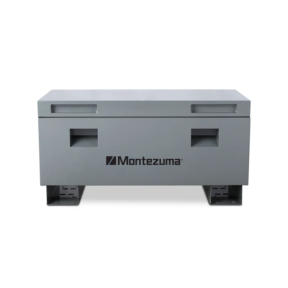 Our 36 in. Steel Jobsite Box secures your tools, supplies and equipment in the back of your truck, at a worksite, baseball diamond or other location. This rugged box is made to stand up to outdoor and everyday use. It is constructed of plate steel with a reinforced lid and fully welded seams to provide maximum strength and help keep out the elements. Skid rails have pre-drilled holes for securing to a floor or truck and make it easy for a forklift to move the box. Recessed, swing up steel handles and skid rails help move the box into place with a two person lift or fork lift.