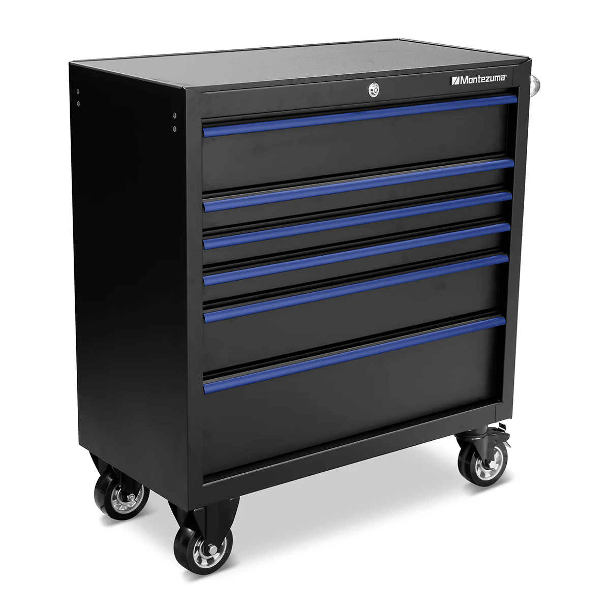 Our new 36 x 18 in. tool cabinet features the exclusive Raise and Release latching system to keep drawers tightly closed and tubular lock to keep your valuables protected. Full extension ball bearing drawer slides hold up to 100 lb., increasing capacity over comparable tool cabinets and providing a smooth pull action. Rugged casters provide easy mobility while supporting the weight.