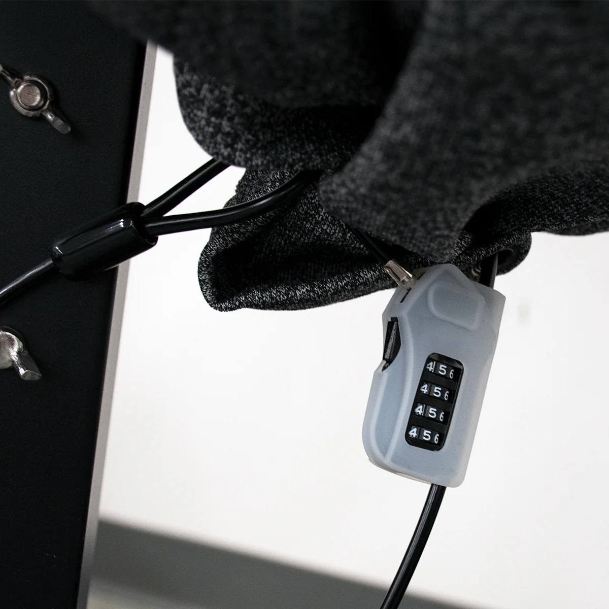 - Cable lock can be threaded through 8 steel grommets, then cinched tight to secure the tools in the revolving trays